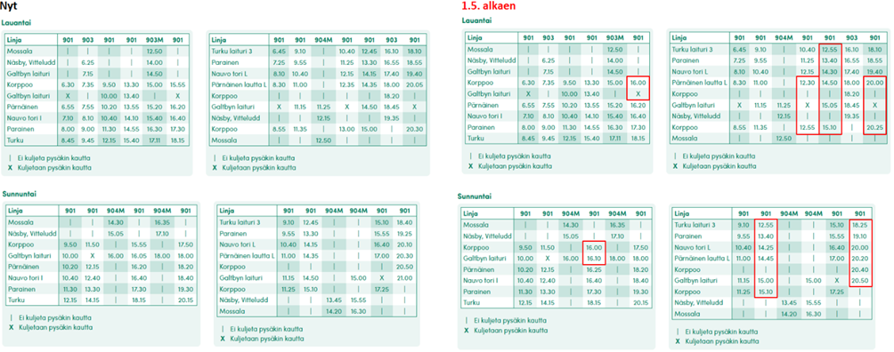 Changes to the timetables of line 901 Turku–Parainen–Nauvo–Korppoo starting from 1.5.2026